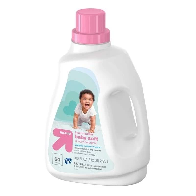 - This package includes one 100-ounce bottle of up & up Infant – Toddler Laundry Detergent in Baby Soft scent, enough for 64 loads.