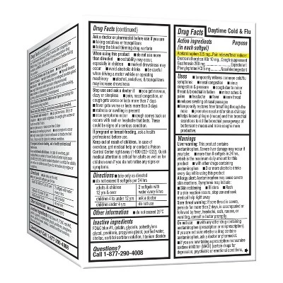 - Health Facts: Contains Acetaminophen, Contains Guaifenesin, Contains Phenylephrine HCI, Contains Dextromethorphan