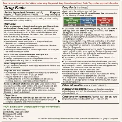 Take the first step on your quit journey with the Step One Nicotine Patches Clear Stop Smoking Aid from up & upâ„¢ . This discreet, easy-to-apply clear nicotine patch is part of a nicotine replacement therapy (NRT) program designed to help regulate, control and gradually reduce your body’s cravings for nicotine. Participating in an NRT is targeted at easing the irritability and restlessness associated with cravings during your transition to becoming a nonsmoker. To begin your smoking cessation program, start with the step one patch if you smoke more than ten cigarettes per day. If you smoke less than ten cigarettes per day, you can start with step two. Once completed, you’ll move on to step three for a gradual step-down effect to help you ease your way into changing your habit for good.