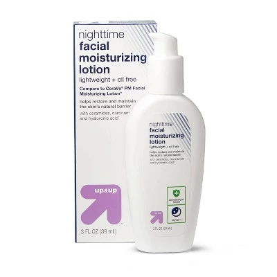 Featuring ceramides, niacinamide, and hyaluronic acid, up & up PM Facial Moisturizer is designed to reinvigorate and renew tired and aging skin with replenishing moisture overnight. This gentle lotion penetrates pores to nourish and hydrate sensitive skin of the face and neck. If you’re not satisfied with any Target Owned Brand item, return it within one year with a receipt for an exchange or a refund.